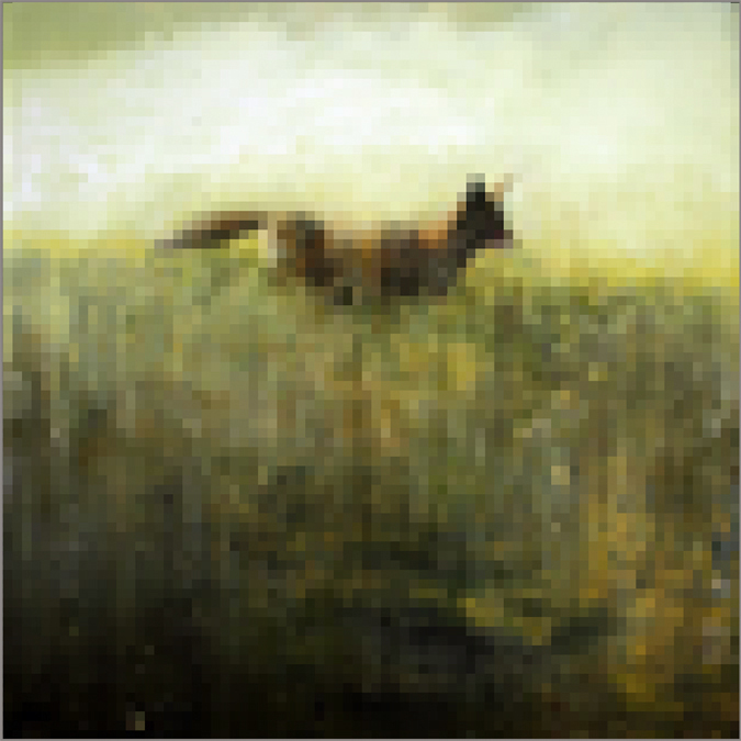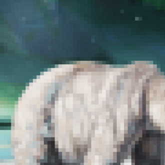 Ein Eisbär im schwindenden Weiß der Nacht, ein Fuchs, im seichten Grün der Dämmerung, ein Schneeleopard im lautlosen Blau der Höhe – 12 Werke, wie aus Licht und Nebel geboren, auf der Schwelle zwischen Sein und Nichtsein.