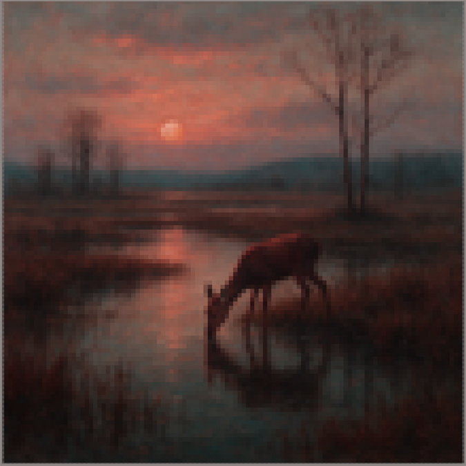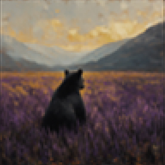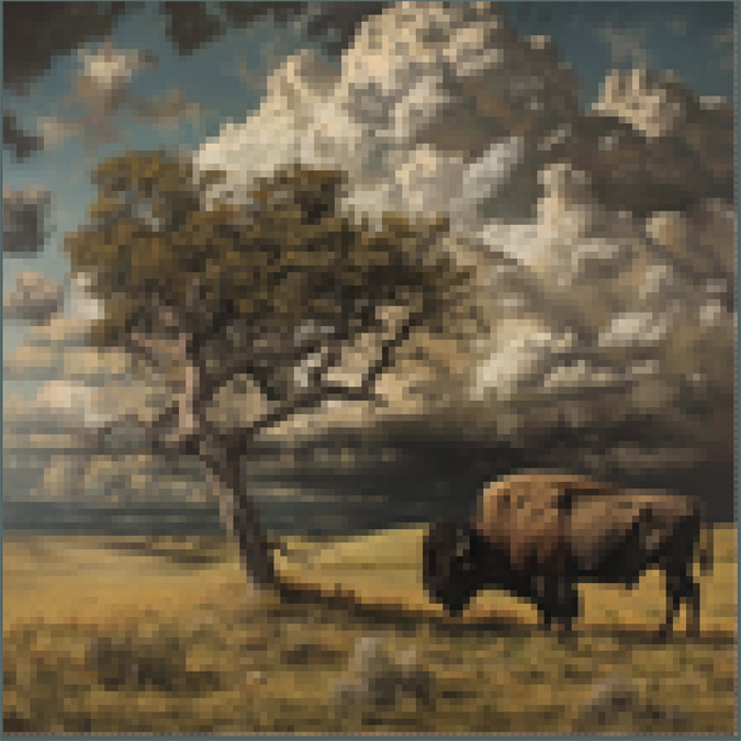 Doch das Bison wirkt nicht durch Hast. Es bewegt sich langsam, entschlossen, scheinbar unbeirrbar. Seine Präsenz ist geerdet, sein Rhythmus groß. Es verkörpert eine Zeitlichkeit, in der Landschaft nicht genutzt, sondern durchlebt wird. Kraft erscheint hier nicht als Angriff, sondern als Beharrlichkeit.