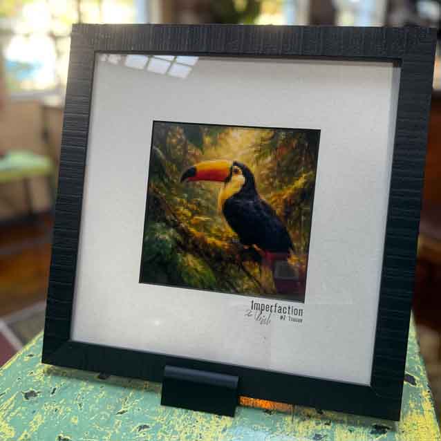 Imperfaction zeigt den Tukan nicht als exotisches Ornament, sondern als fragile Erscheinung. Nicht weil seine Farben verblassen – sondern weil selbst das Leuchtende verschwindet, wenn die Wege zwischen den Dingen abbrechen.